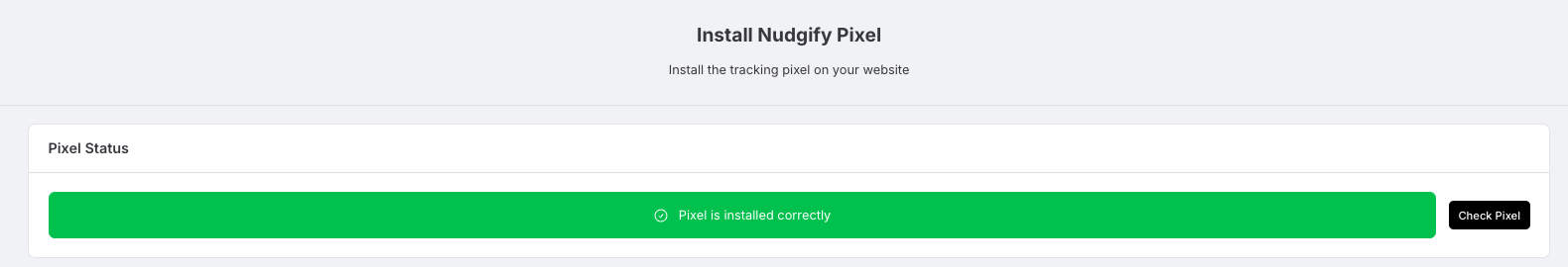 - Do you see the green “Pixel installed” message? Congratulations, you have installed the Nudgify Pixel on your website and you will be able to see the Nudges you create on the targeted pages!