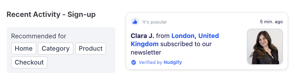 Once you’re done, click “Continue”. The Nudge will now automatically capture and show individual recent sign-ups. You can track how your Nudges perform from your Statistics page.