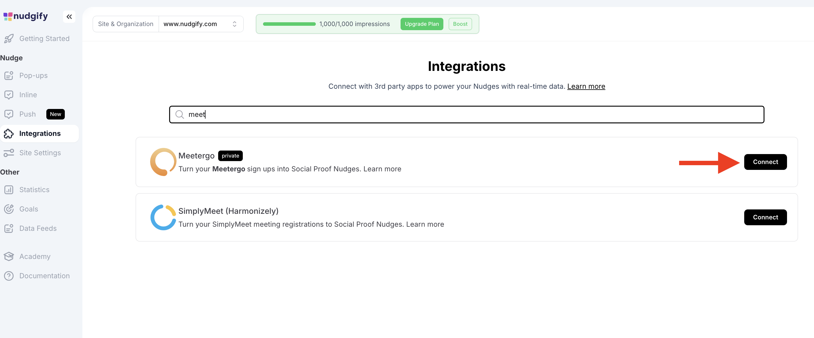 You can easily connect Meetergo to Nudgify with our Meetergo integration to showcase Social Proof notifications on your website, in real-time.