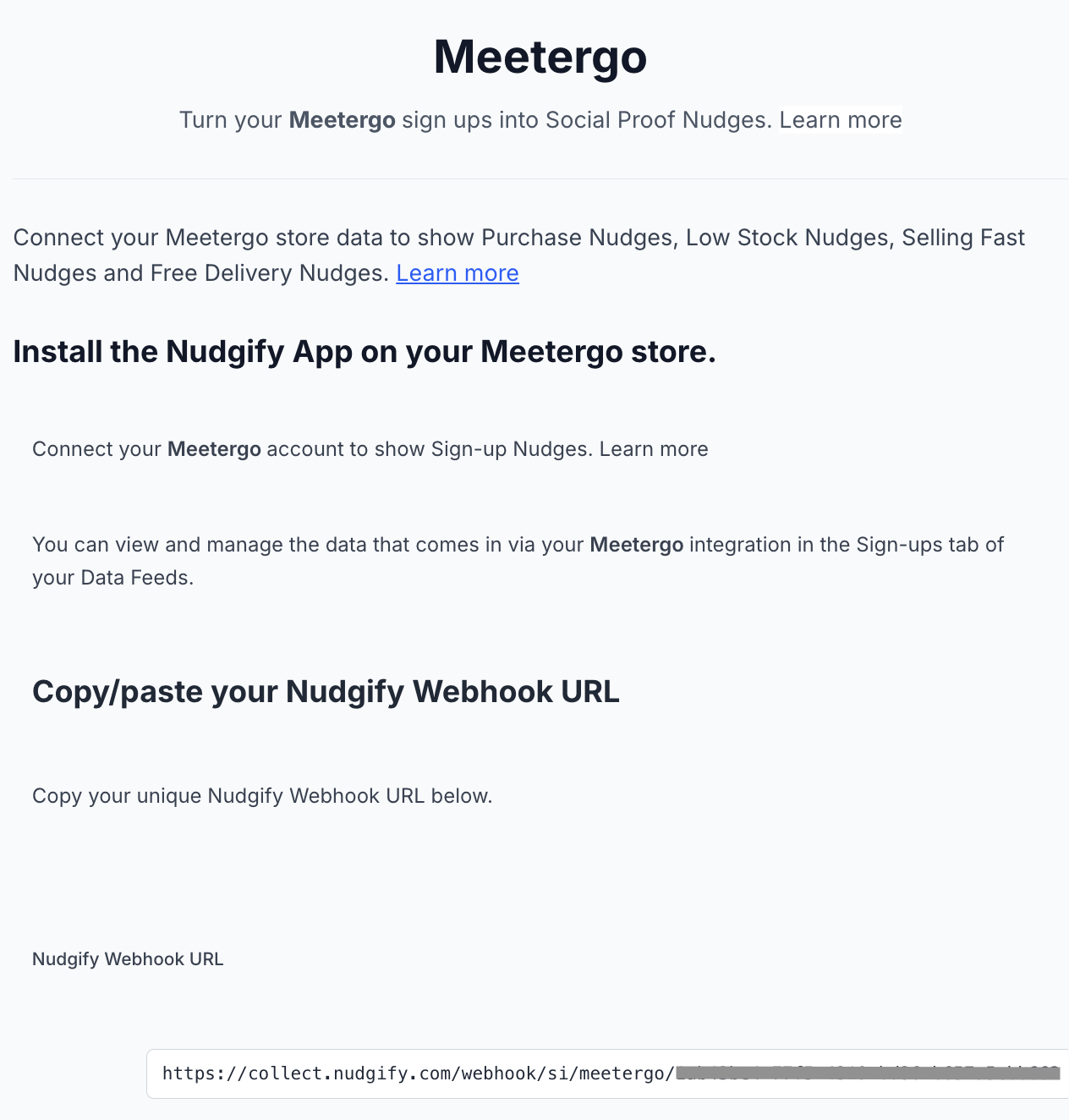 Click to copy your Nudgify Webhook URL