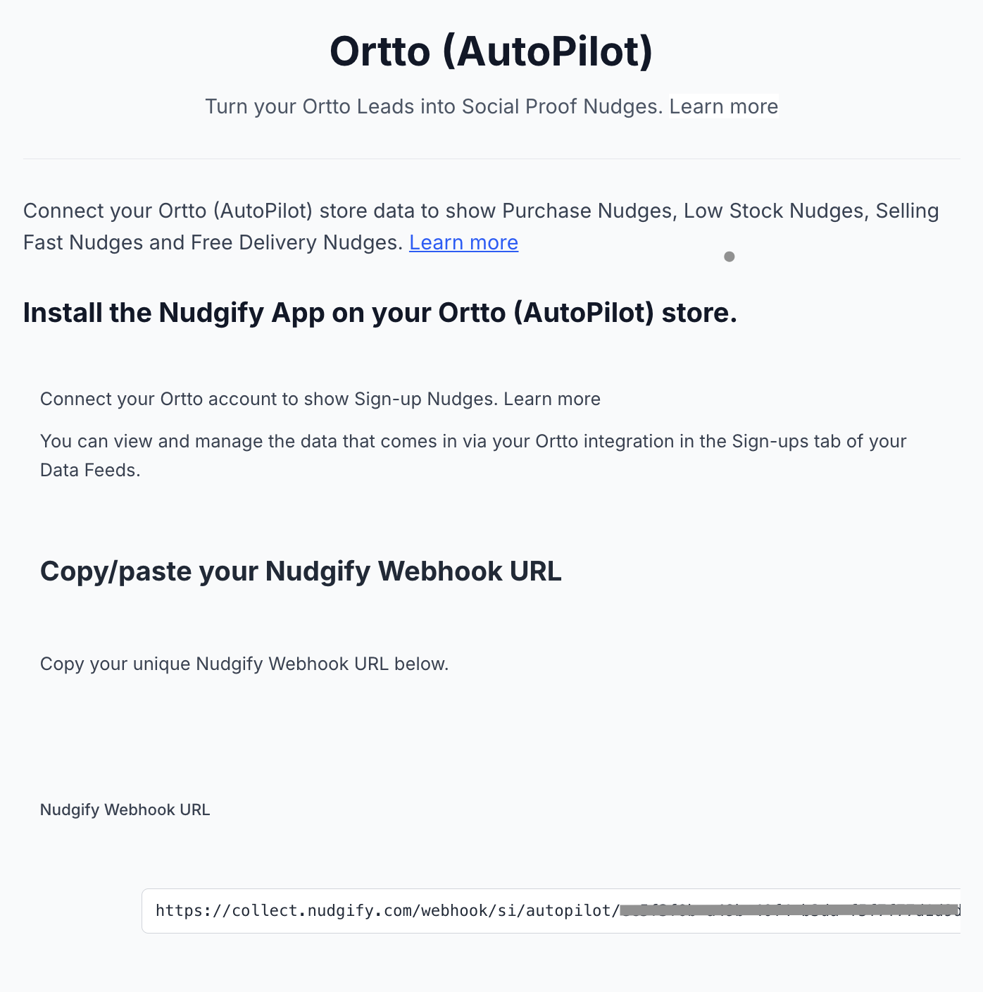 Click to copy your Nudgify Webhook URL