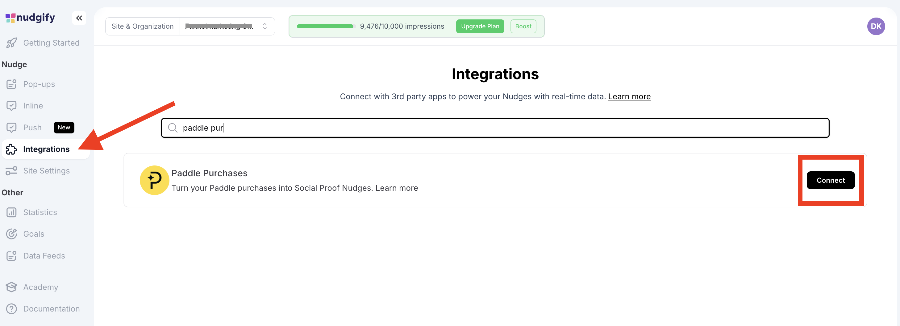 Follow the steps below to connect your Paddle registration data to Nudgify and show new registrations in Purchase Nudges.