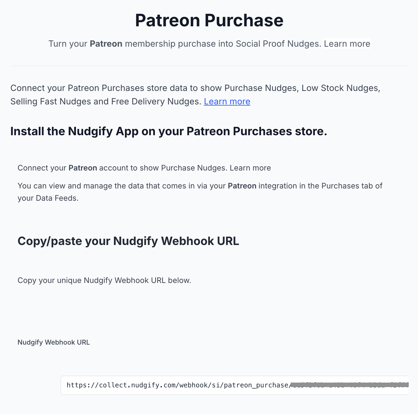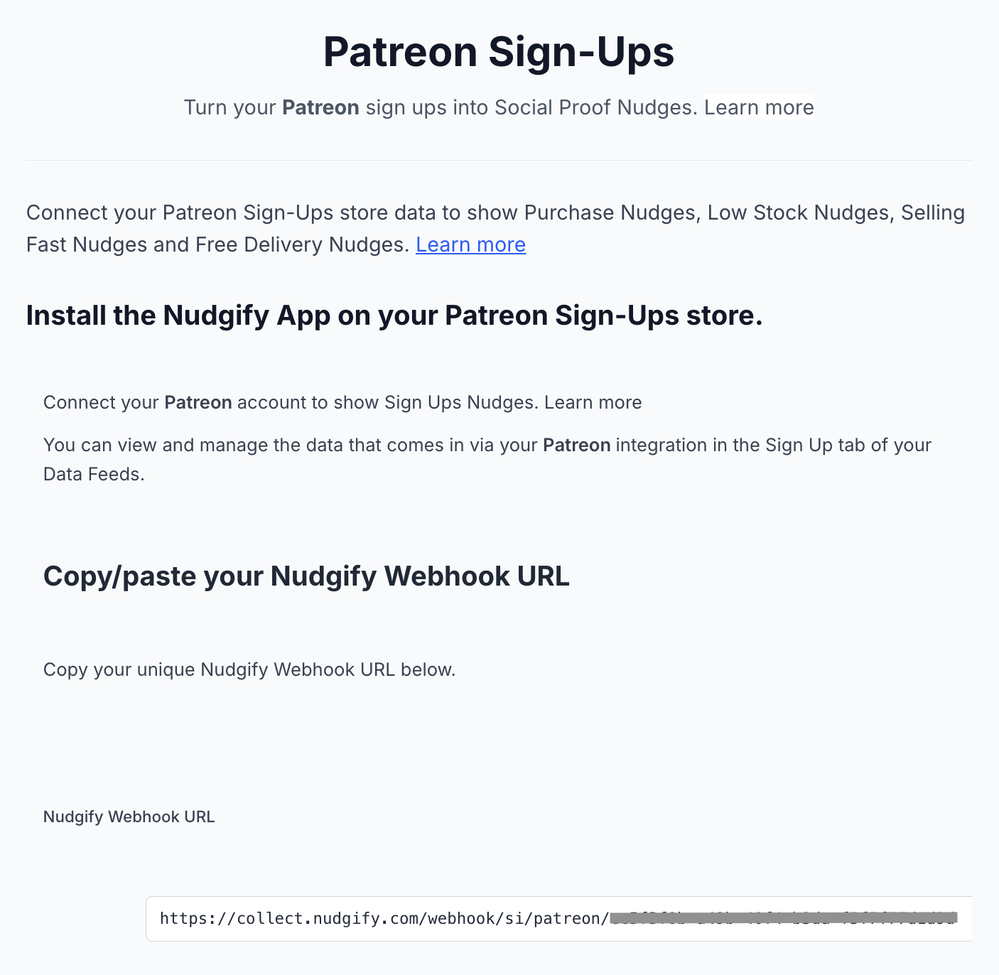 Click to copy your Nudgify Webhook URL