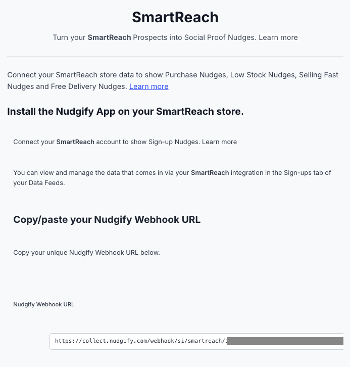 You will now paste your Nudgify Webhook URL in the right place in your SmartReach account so that new user data is sent automatically to your Nudgify account.