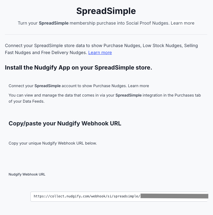 You will now paste your Nudgify Webhook URL in the right place in your SpreadSimple account so that new user data is sent automatically to your Nudgify account.