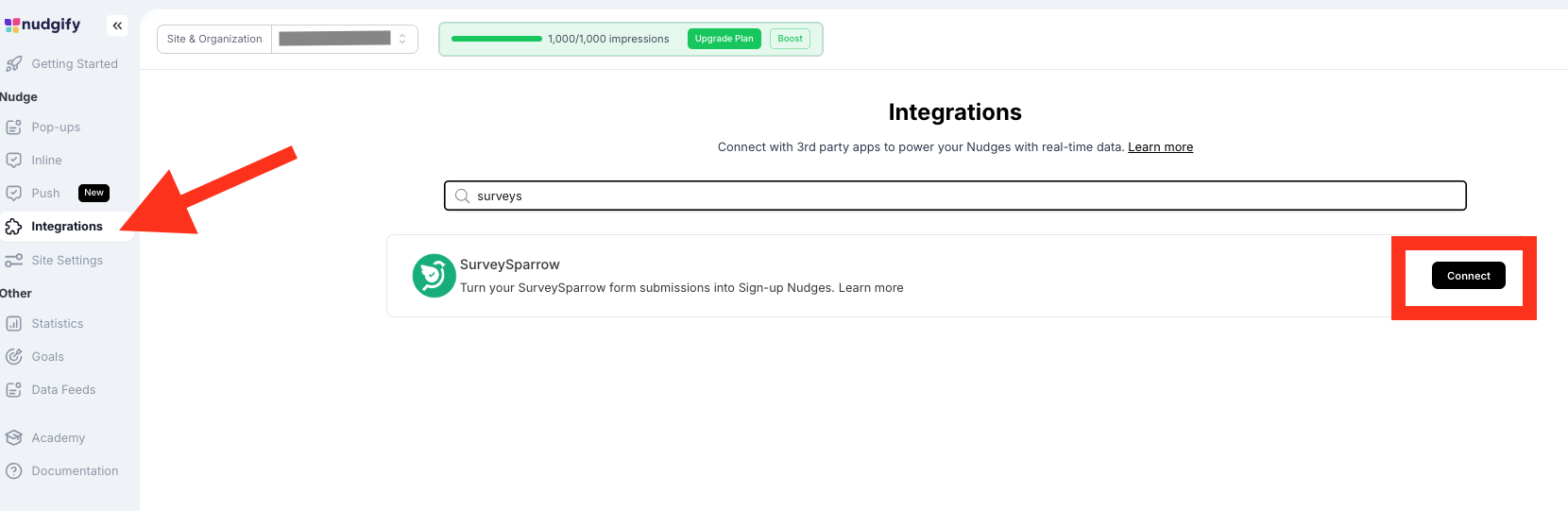Follow the steps below to connect your Surveysparrow user data to Nudgify and show new contacts in Sign-up Nudges.
