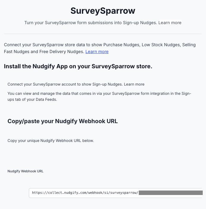 - Copy your SurveySparrow Webhook URL from your Nudgify account.