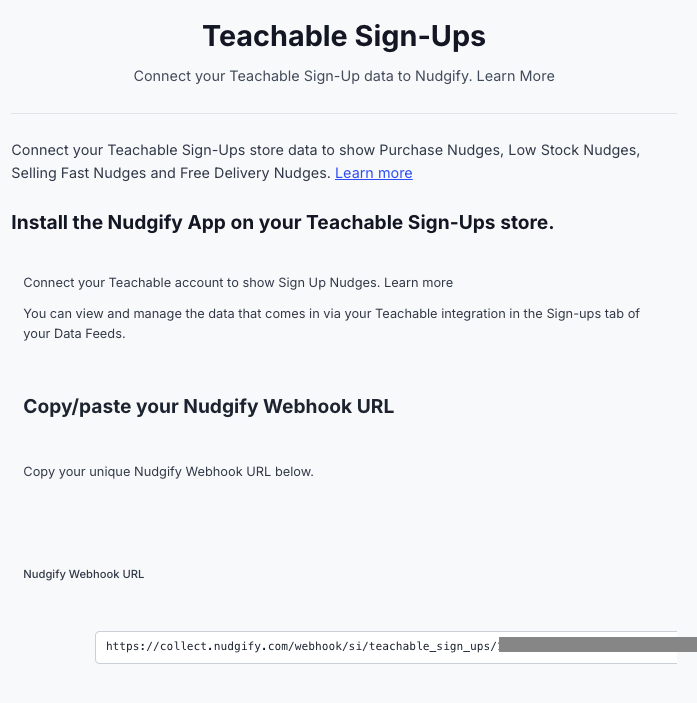 Click to copy your Nudgify Webhook URL