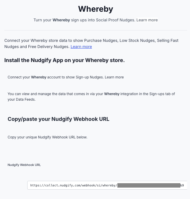 You will now paste your Nudgify Webhook URL in the right place in your Whereby account so that new user data is sent automatically to your Nudgify account.