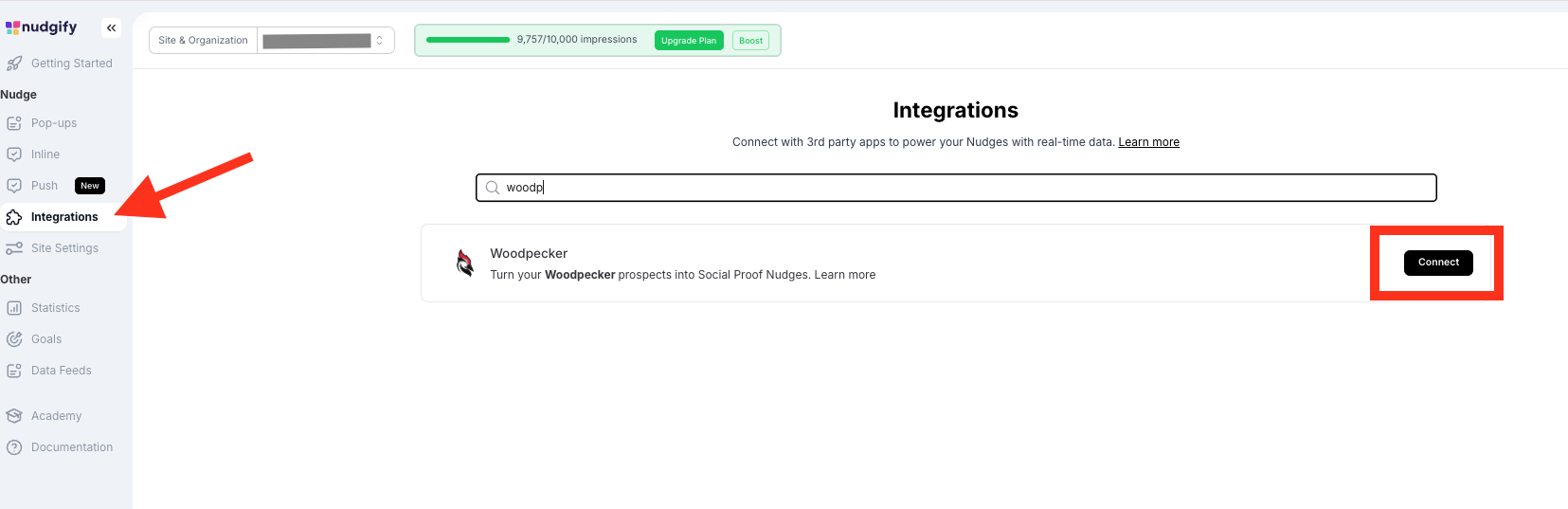 Follow the steps below to connect your Woodpecker user data to Nudgify and show new contacts in Sign-up Nudges.