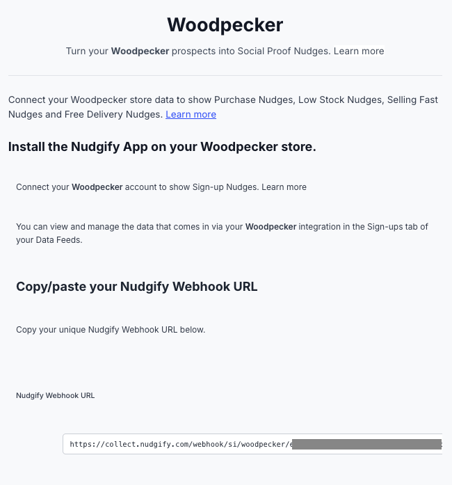 You will now paste your Nudgify Webhook URL in the right place in your Woodpecker account so that new user data is sent automatically to your Nudgify account.