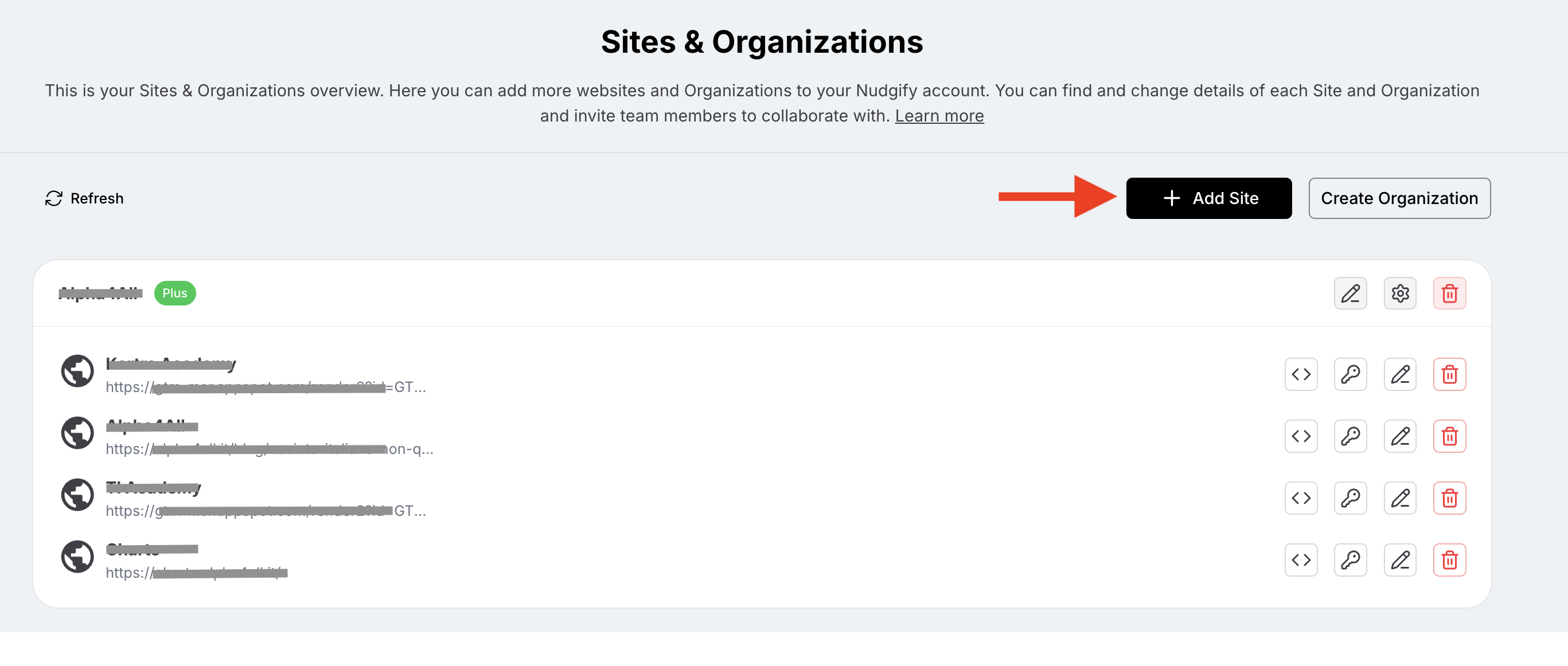 - Click the Add Site button.