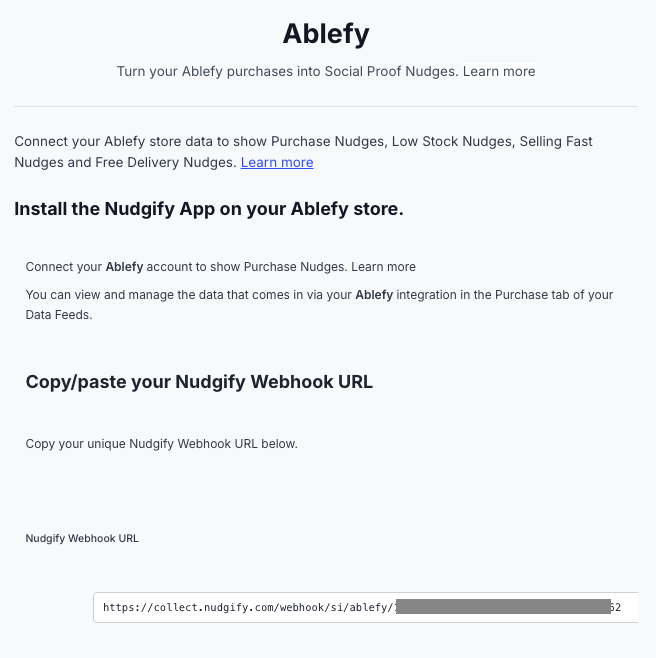 Click to copy your Nudgify Webhook URL