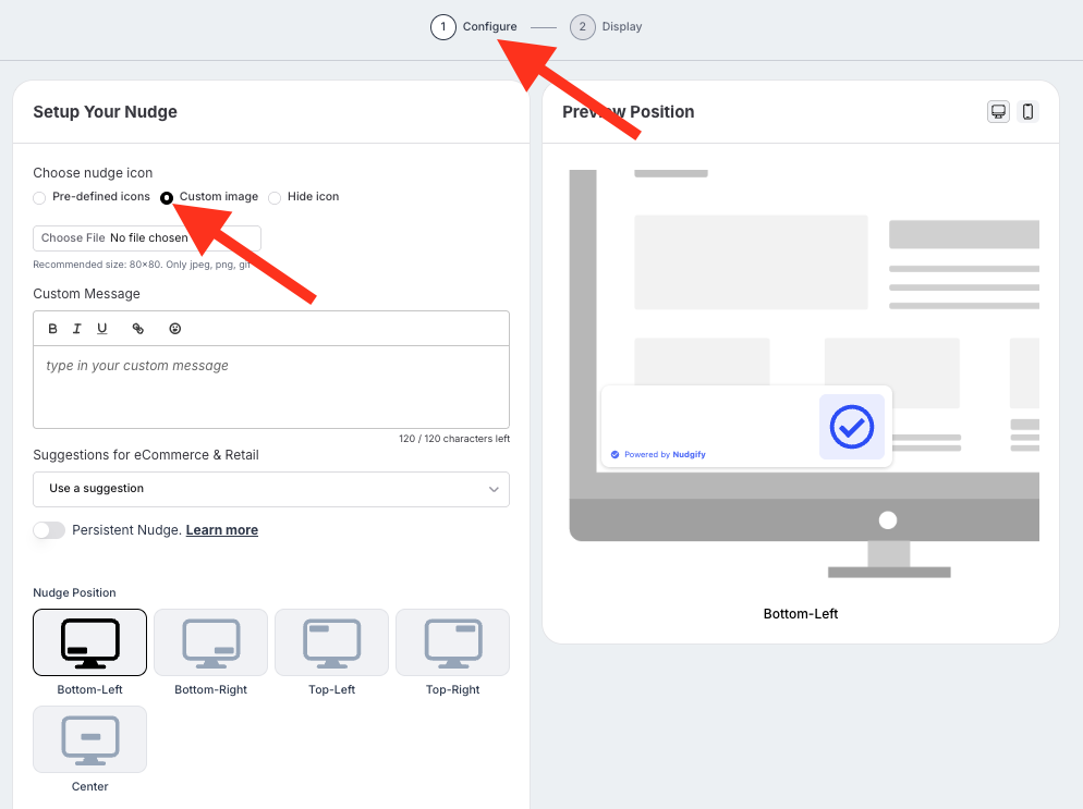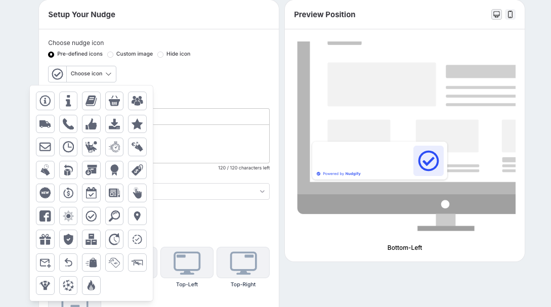 Nudgify gives you the oppportunity to tailor your Custom Nudge to your website by choosing the image you want. You can pick one of our pre-defined icons or upload your own image.