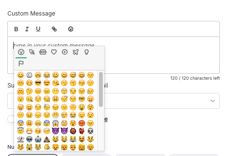 When creating a Custom Nudge, just click the emoji icon to pick any emoji you want to add to your Custom Nudge message.