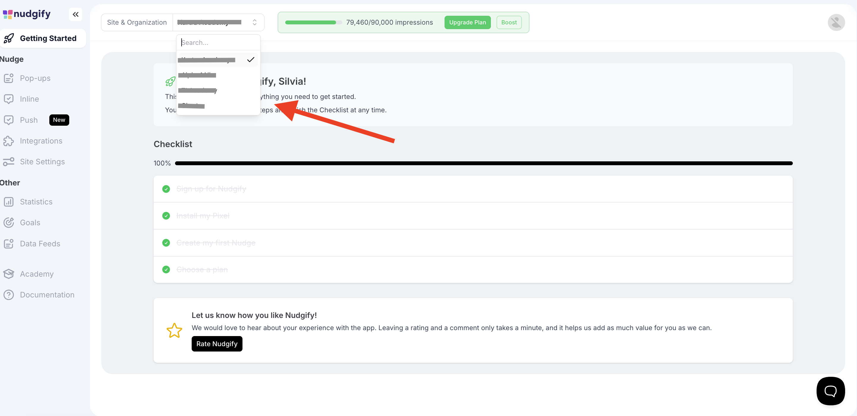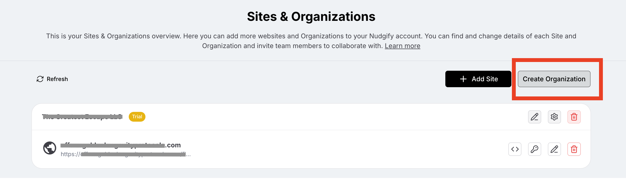 We created Organizations and Teams to make it easy to manage Nudgify on multiple Sites and work together with colleagues or clients.