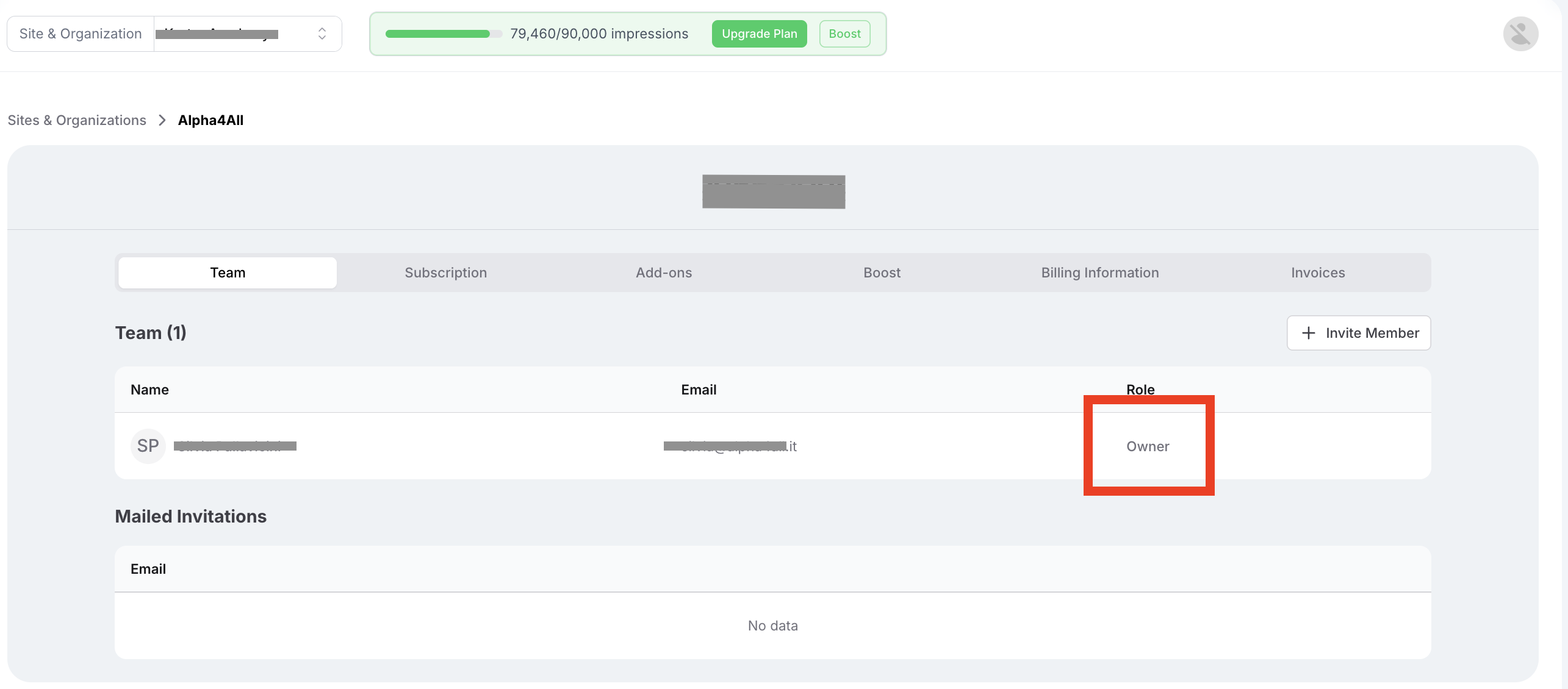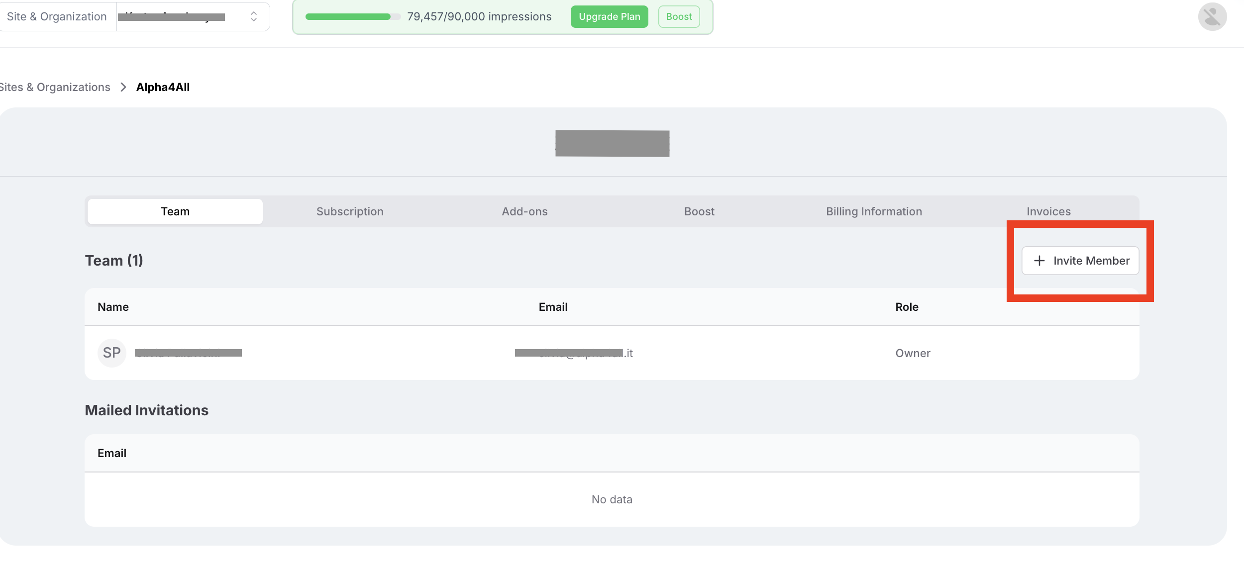 The Owner of the Organization can invite others to join their Organization as Team Members.