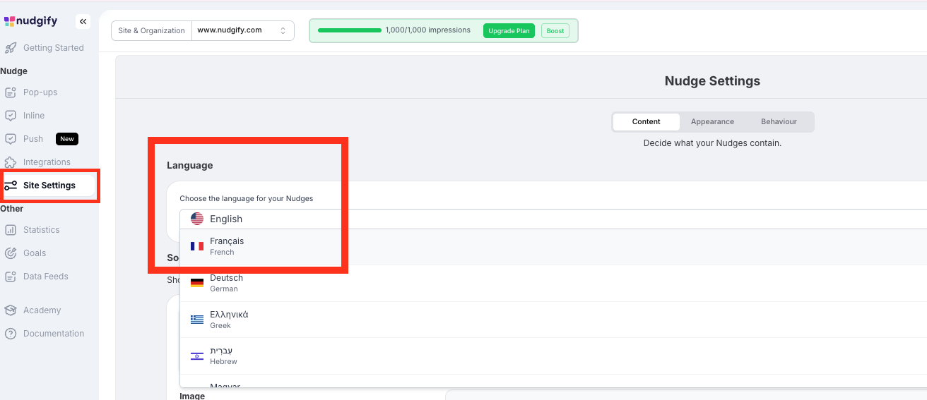Is Nudgify Available In French in Shopify?