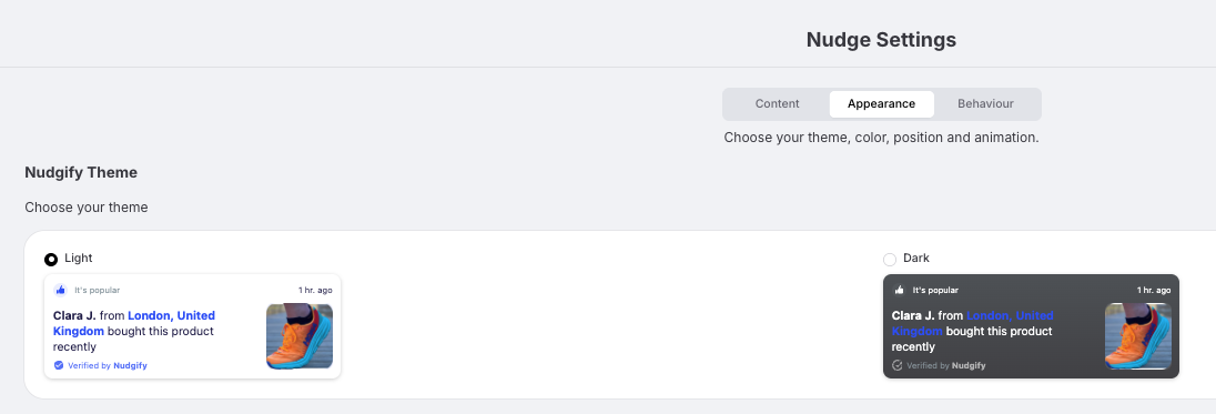 Select whether you want your Nudges to appear with a light or dark background.