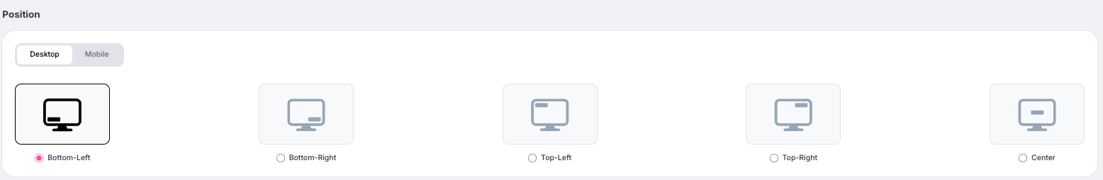Choose where your Nudges should appear on your website. Most websites display Nudges in the bottom right corner.