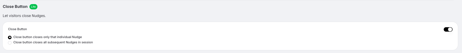 When enabled, visitors will see a small close icon in the top right corner when hovering over a Nudge.