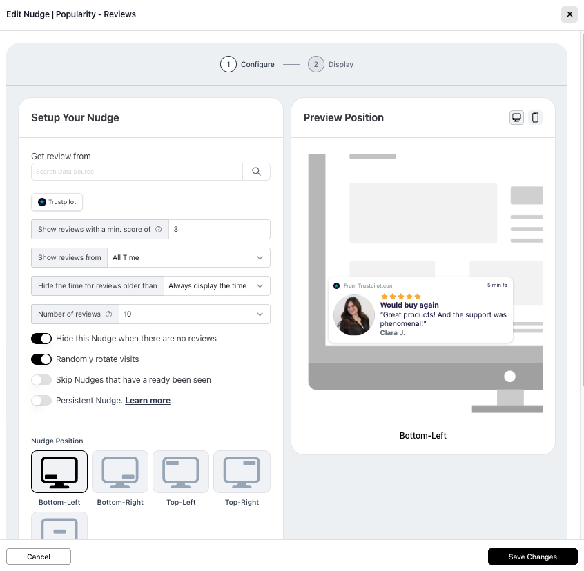 To see the configuration options for each Nudge type, see this list of guides per Nudge type.