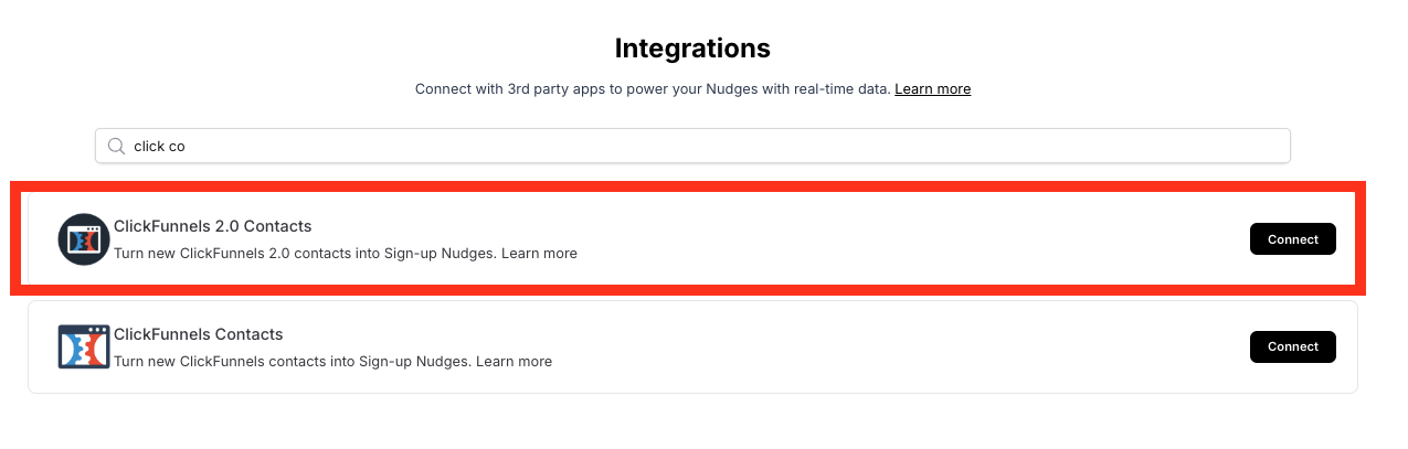 Follow the steps below to connect your ClickFunnels contacts to Nudgify and show new contacts in Sign-up Nudges.