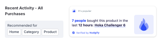 Once you’re done, click “Continue”. The Nudge will now automatically capture and show individual recent purchases. You can track how your Nudges perform from your Statistics page.