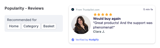 When creating a new Nudge, choose the Popularity - Reviews in the Social Proof Nudges category of the Nudge Library.