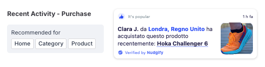 Once you’re done, click “Continue”. The Nudge will now automatically capture and show individual recent Purchases. You can track how your Nudges perform from your Statistics page.