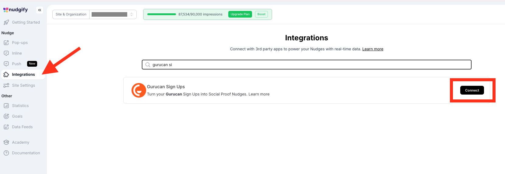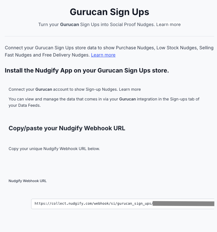 Follow the steps below to connect your Gurucan user data to Nudgify and show new Sign Ups in Sign-up Nudges.