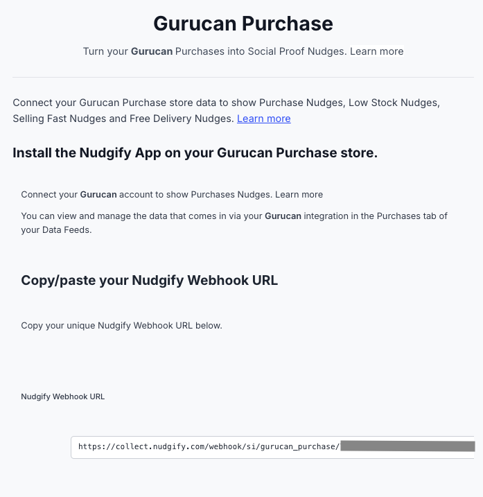 You will now paste your Nudgify Webhook URL in the right place in your Gurucan account so that new user data is sent automatically to your Nudgify account.