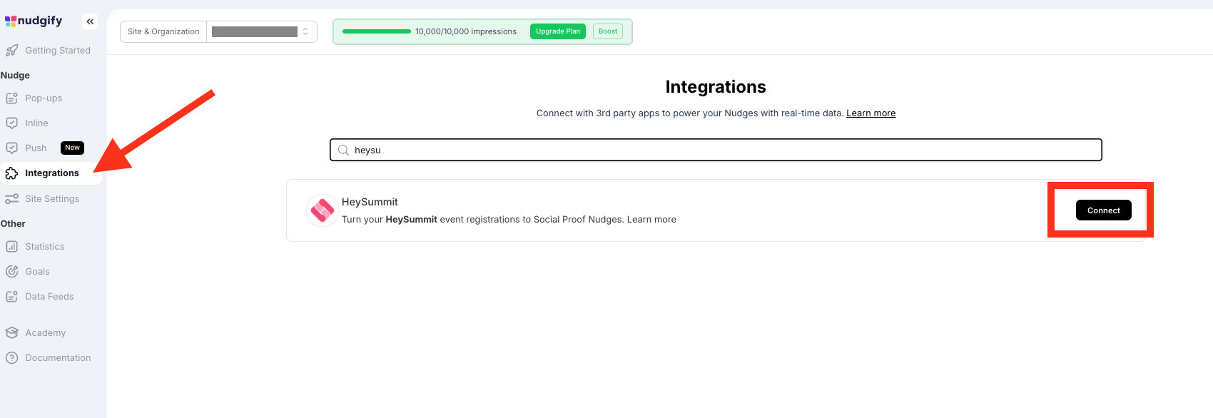 Follow the steps below to connect your HeySummit registration data to Nudgify and show new registrations in Sign-up Nudges.