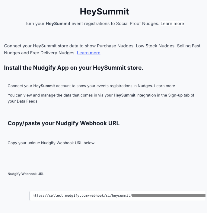 You will now paste your Nudgify Webhook URL in the right place in your HeySummit account so that new user data is sent automatically to your Nudgify account.