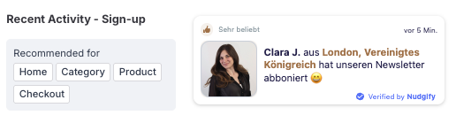 Once you’re done, click “Continue”. The Nudge will now automatically capture and show individual recent sign-ups. You can track how your Nudges perform from your Statistics page.