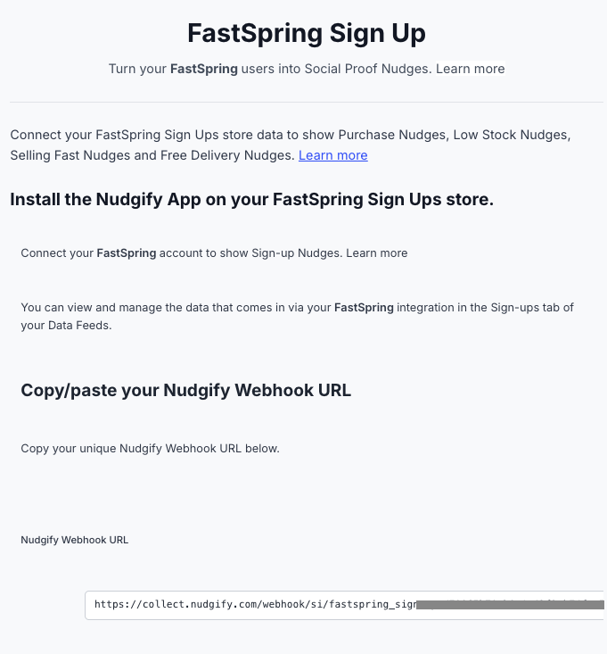 Follow the steps below to connect your FastSpring user data to Nudgify and show new Sign Ups in Sign-up Nudges.