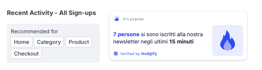 - Recent Sign-Ups Nudges that show single sign-ups