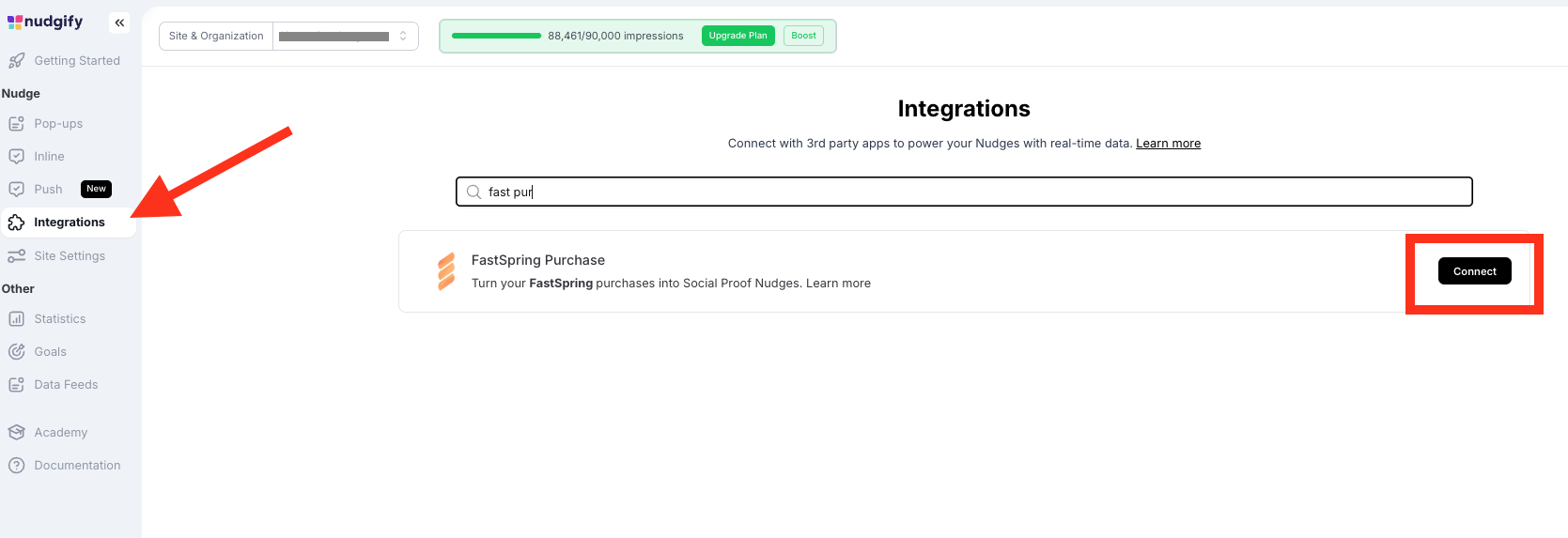 Follow the steps below to connect your FastSpring purchase data to Nudgify and show new registrations in Purchase Nudges.