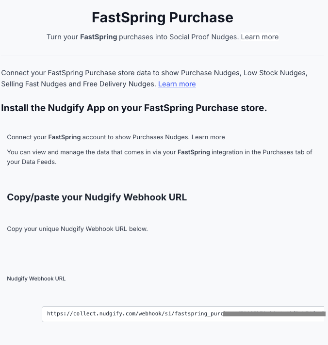 You will now paste your Nudgify Webhook URL in the right place in your FastSpring account so that new user data is sent automatically to your Nudgify account.