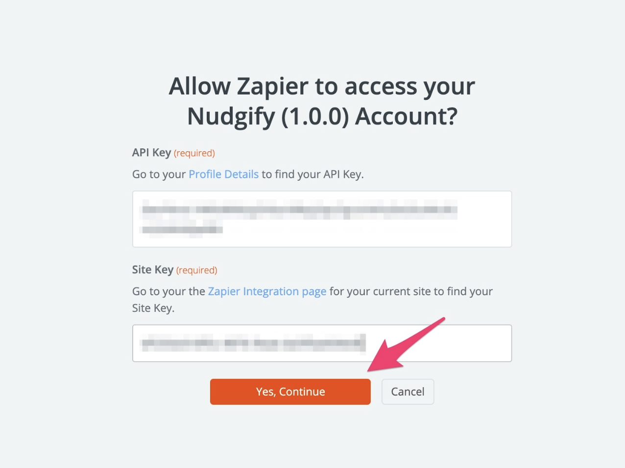 - Connect your Nudgify account by pasting your API Key and Site Key