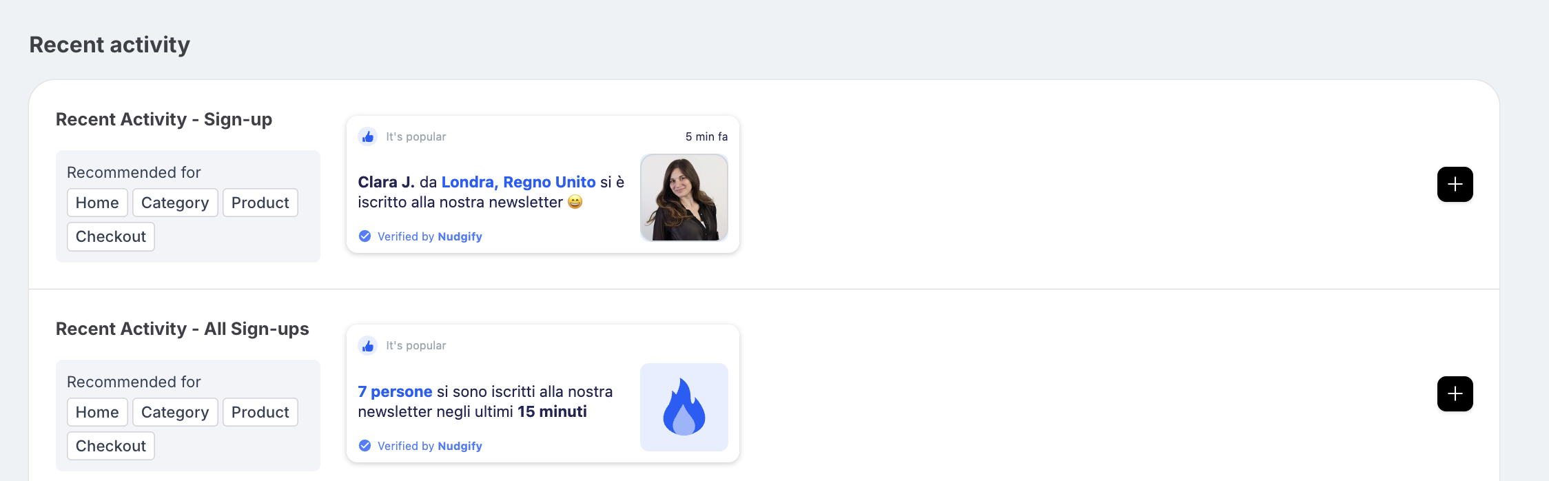 Once you’re done, click “Continue”. The Nudge will now automatically capture and show individual recent sign-ups. You can track how your Nudges perform from your Statistics page.