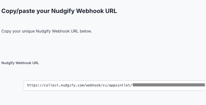 You will now paste your Nudgify Webhook URL in the right place in your Appointlet account, so that new user data is sent automatically to your Nudgify account.