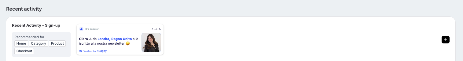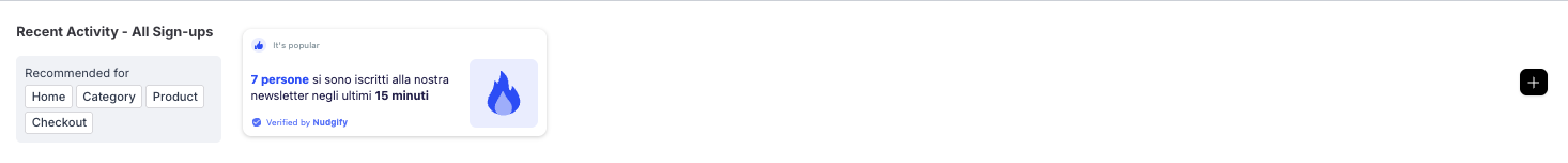 Go to the Pop-Up page and click “Add Nudge”. Choose the Nudge labeled “Recent Activity – Sign-up” from the Nudge Library.