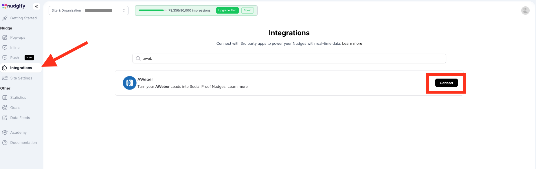 Follow the steps below to connect your AWeber user data to Nudgify and show new contacts in Sign-up Nudges.
