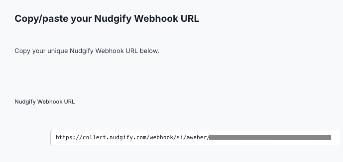 You will now paste your Nudgify Webhook URL in the right place in your AWeber account so that new user data is sent automatically to your Nudgify account.