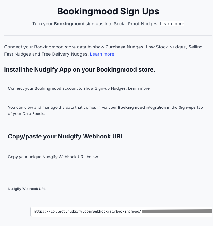 You will now paste your Nudgify Webhook URL in the right place in your Bookingmood account so that new user data is sent automatically to your Nudgify account.