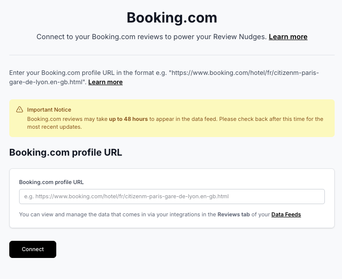 Click “Connect”. Your Booking.com URL has been saved and is now connected to Nudgify.