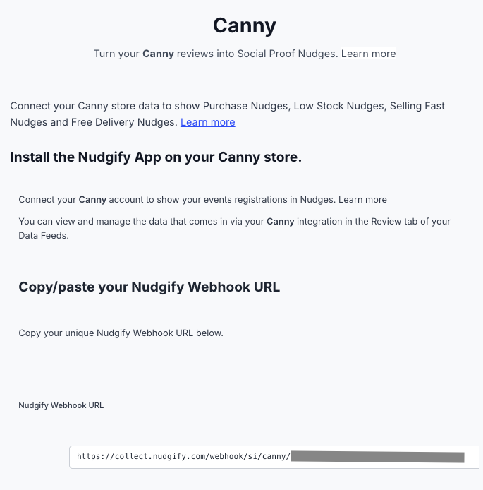 You will now paste your Nudgify Webhook URL in the right place in your Canny account so that new user data is sent automatically to your Nudgify account.