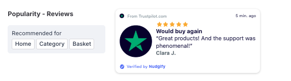 You can also customize the text of the Nudge here (“subscribed to our newsletter”, “signed-up to our mailing list”, or whatever you want to display). You can also select how recent the Reviews need to be that you want to display. Find out more about the customisation options for Reviews Nudges.